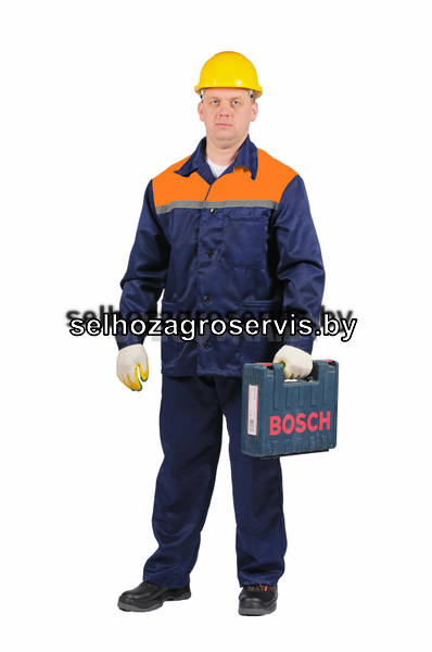 КОСТЮМ РАБОЧИЙ УСИЛЕННЫЙ С БРЮКАМИ (ОРАНЖЕВАЯ ВСТАВКА)